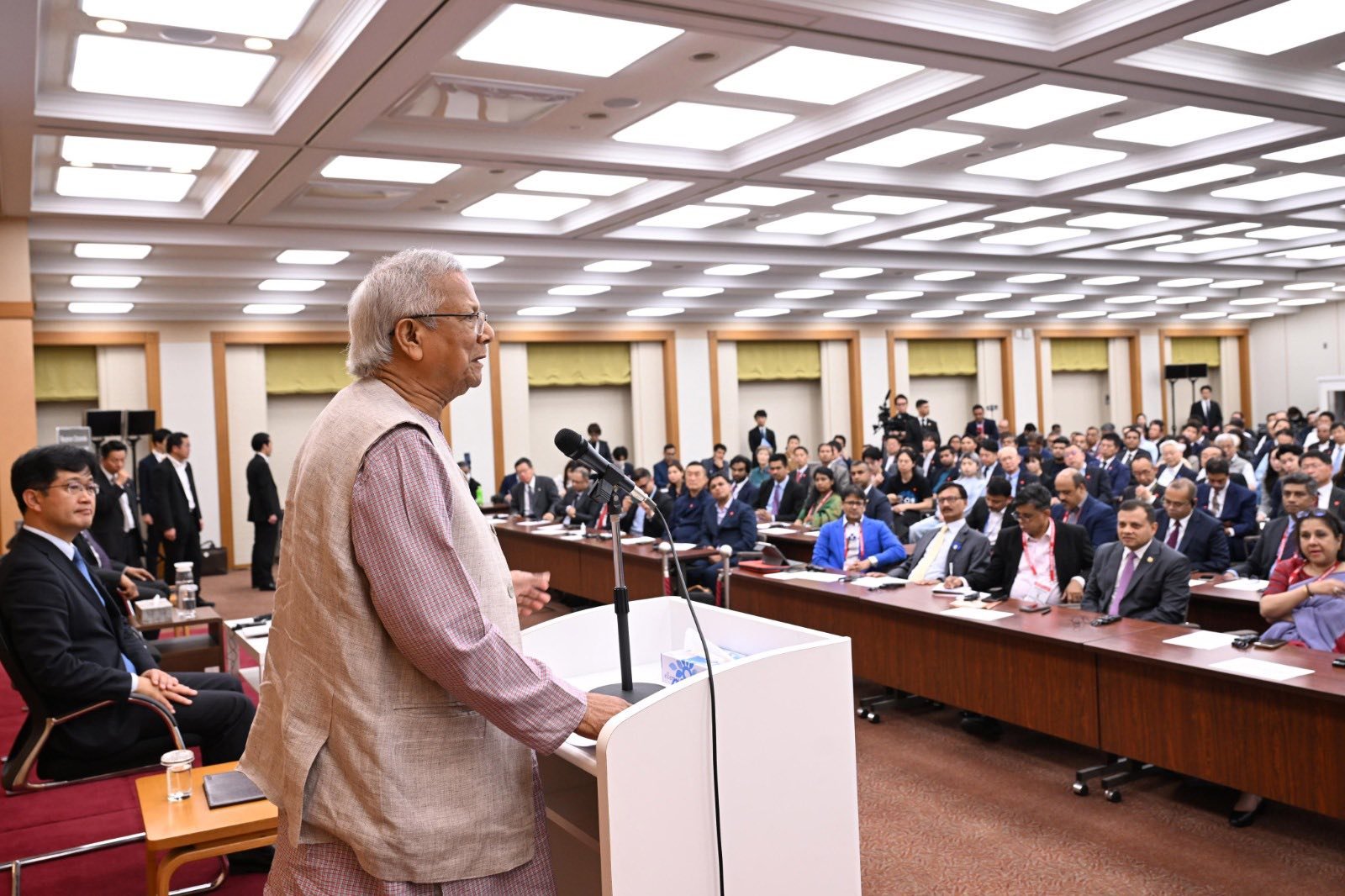 এনবিসিসি চেয়ারম্যান মিকিও কেসাগায়ামা স্মরণ করে বলেন, প্রায় ১৪ বছর আগে অধ্যাপক ইউনূস জাপানে এসেছিলেন এবং ক্ষুদ্রঋণের মাধ্যমে নারীদের সহায়তার গল্প বলেছিলেন। তিনি বলেন, ‘আমাদের ফেডারেশন তরুণ ও দক্ষ শ্রমিকের জন্য বাংলাদেশকে একটি সম্ভাবনাময় উৎস হিসেবে দেখছে। তারা উভয় দেশের উন্নয়নে অবদান রাখতে পারবে।’ তিনি আরও বলেন, ‘আগামী পাঁচ বছরে আমরা এক লাখ বাংলাদেশি শ্রমিককে স্বাগত জানাতে প্রস্তুত।’