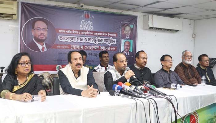 ঢাকা: একুশে ফেব্রুয়ারি আমাদের অন্যায়ের প্রতিবাদ করতে শিক্ষা দিয়েছে উল্লেখ করে জাতীয় পার্টির চেয়ারম্যান ও বিরোধীদলীয় উপনেতা সাংসদ গোলাম মোহাম্মদ কাদেরবলেছেন, ‘প্রয়োজনে ত্যাগ স্বীকার করতে হবে। রক্ত দিয়ে সত্যকে প্রতিষ্ঠিত করতে শিক্ষা দেয় একুশে। সুশাসন ও ন্যায় বিচার ভিত্তিক সমাজ বিনির্মাণে অনুপ্রেরণা যোগায় একুশে ফেব্রুয়ারি। অন্যায়কে পরাজিত করতেই আমরা রাজনীতি করব। ১৯৫২ সালে অন্যায়ভাবে সংখ্যাগরিষ্ঠ মানুষের ভাষা বাংলাকে রাষ্ট্র ভাষার মর্যাদা দেয়া হয়নি। এর প্রতিবাদে আমাদের রাষ্ট্র ভাষা আন্দোলন হয়েছিল। ভাষা আন্দোলনের সাফল্যই প্রতিটি আন্দোলন সংগ্রামে অনুপ্রেরণা যুগিয়েছে। ভাষা আন্দেলনের অনুপ্রেরণায় আমাদের মুক্তিযুদ্ধে বিজয় এসেছে। ভাষা আন্দোলনের অনুপ্রেরণায় আমরা একটি স্বাধীন ও স্বার্বভৌম রাষ্ট্র পেয়েছি। অন্যায়ের প্রতিবাদে রক্ত দেয়ার শিক্ষাও আমাদের দিয়েছে একুশে ফেব্রুয়ারি। স্বাধীনতা সংগ্রাম হয়েছিল মুক্তির জন্য। আমরা স্বাধীন হয়েছি কিন্তু মুক্তি পাইনি। দেশের মানুষ বৈষম্য ও কুশাসনের বিরুদ্ধে মুক্তি পায় না।’