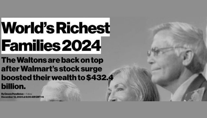 ওয়ালটন পরিবারের শীর্ষ স্থানে ফিরে আসা: ওয়ালটন পরিবার ব্লুমবার্গের ধনীতম পরিবারের তালিকায় ফিরে এসেছে মূলত ওয়ালমার্টের শেয়ারের কারণে। ২০২৪ সালের ১০ ডিসেম্বর পর্যন্ত, এ বছরের মধ্যে ওয়ালমার্টের শেয়ারের মূল্য ৮০ শতাংশ বেড়েছে, যা তাদের সম্মিলিত পারিবারিক সম্পদ ১৭২ দশমিক সাত বিলিয়ন ডলার বাড়িয়ে দিয়েছে। তাদের সম্পদ বৃদ্ধির হার ছিল দিনে প্রায় ৪৭৩ দশমিক দুই মিলিয়ন ডলার বা প্রতি মিনিটে তিন লাখ ২৮ হাজার ৫৭৭ ডলার।