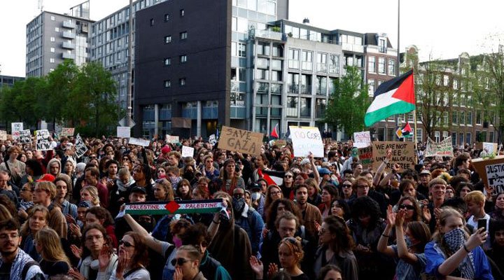 একইদিন নেদারল্যান্ডসের আমস্টারড্যাম বিশ্ববিদ্যালয়ে আন্দোলনকারীদের ক্যাম্প ভেঙে দেয় ডাচ পুলিশ। গ্রেফতার করা হয় প্রায় অর্ধশত বিক্ষোভকারীকে।