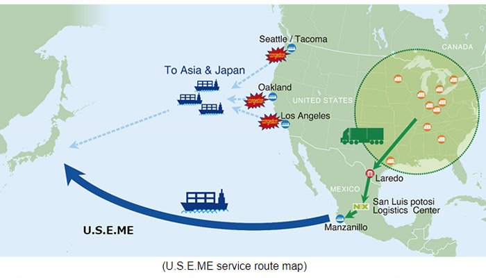 উল্লেখ্য, মার্কিন পশ্চিম উপকূলে যানজট এড়াতে গত বছর নিপ্পন এক্সপ্রেস জাপান থেকে মেক্সিকো হয়ে উত্তর আমেরিকায় একটি পরিষেবা শুরু করেছিল। এখন ‘ইউএস এক্সপোর্ট সার্ভিস ভায়া মেক্সিকো’ পরিষেবা চালু হওয়ায় মেক্সিকো হয়ে জাপান ও উত্তর আমেরিকার মধ্যে উভয় দিকেই পরিষেবা পাওয়া যাবে।