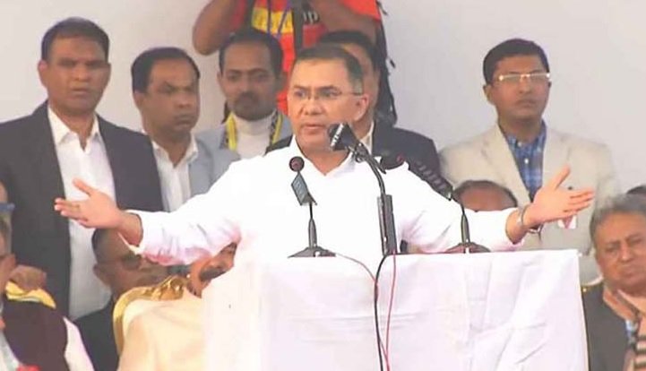 তারেক রহমান বলেন, ‘আজ বাংলাদেশের মানুষ কথা বলার অধিকার ফিরে পেতে চায়। তারা তাদের গণতান্ত্রিক অধিকার ফিরে পেতে চায়। বাংলাদেশের মানুষ চায় তারা তাদের যোগ্যতা অনুযায়ী ন্যায্য অধিকার পাবে। আজ সময় এসেছে সবাই মিলে দেশ গড়ার।