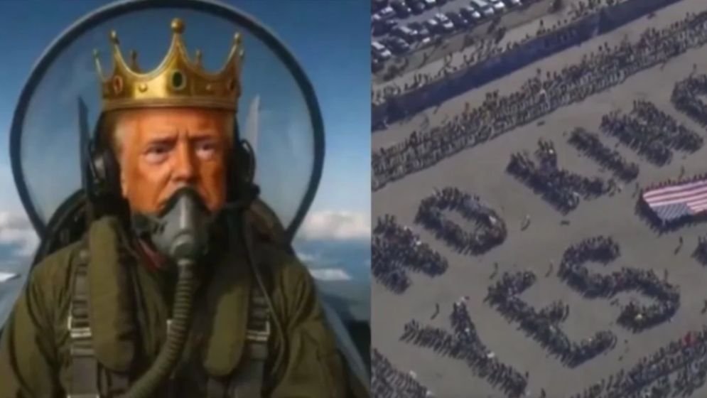 মার্কিন প্রেসিডেন্ট ডোনাল্ড ট্রাম্প সামাজিক মাধ্যমে এমন একটি ভুয়া ভিডিও প্রকাশ করেছেন, যেখানে তাকে মুকুট পরা অবস্থায় দেখা যায় এবং ‘কিং ট্রাম্প’ লেখা একটি জেটে উড়ে যেতে দেখা যায়। এ সময় সেই বিমান থেকে প্রতিবাদকারীদের ওপর বাদামী তরল (মলের মতো) ফেলা হচ্ছে।