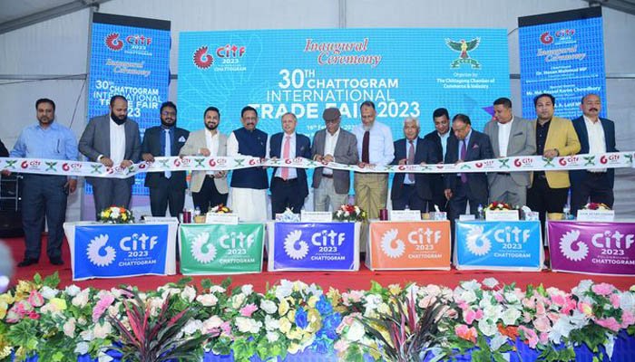 চট্টগ্রাম: চট্টগ্রাম সিটির রেলওয়ে পলোগ্রাউন্ডে মাসব্যাপী ‘৩০তম চট্টগ্রাম আন্তর্জাতিক বাণিজ্য মেলা-২০২৩’ শুরু হয়েছে। দি চিটাগাং চেম্বার অব কমার্স এন্ড ইন্ডাষ্ট্রি এ মেলার আয়োজন করছে। বৃহস্পতিবার (১৬ ফেব্রুয়ারি) বিকালে মেলার উদ্বোধনী অনুষ্ঠানে প্রধান অতিথি ছিলেন তথ্য ও সম্প্রচার মন্ত্রী হাছান মাহমুদ। বিশেষ অতিথি ছিলেন চট্টগ্রাম সিটি কর্পোরেশনের (চসিক) মেয়র মো. রেজাউল করিম চৌধুরী, নৌ-পরিবহন মন্ত্রণালয় সংক্রান্ত সংসদীয় স্থায়ী কমিটির সদস্য সাংসদ এমএ লতিফ, এফবিসিসিআইয়ের সভাপতি মো. জসিম উদ্দিন।