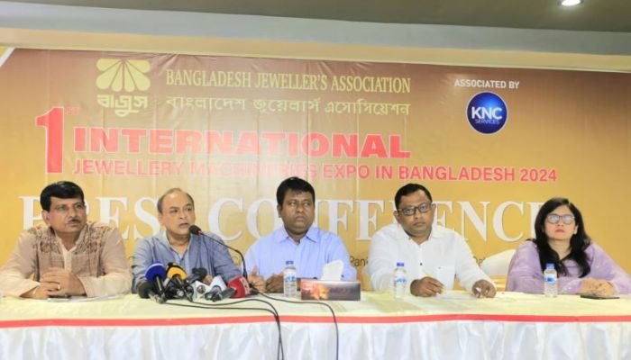 সোমবার (২৪ জুন) বসুন্ধরা সিটির বাজুসের কার্যালয়ে সংবাদ সম্মেলন করে বাজুসের সহ-সভাপতি সমিত ঘোষ অপু এসব জানান। সংবাদ সম্মেলনে বাজুসের সাধারণ সম্পাদক বাদল চন্দ্র রায়, বাজুসের মুখপাত্র ও সাবেক সভাপতি এবং বাজুসের কার্যনির্বাহী সদস্য দিলীপ কুমার রায় সহ-সভাপতি সমিত ঘোষ অপু, বাজুসের উপদেষ্টা রুহুল আমিন রাসেল, কেএনসি সার্ভিসেসের প্রতিষ্ঠাতা প্রধান নির্বাহী কর্মকর্তা ক্রান্তি নাগভেকার উপস্থিত ছিলেন।
