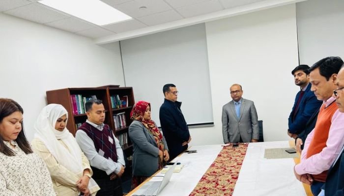 নিউইয়র্ক, যুক্তরাষ্ট্র: যুক্তরাষ্ট্রের নিউইয়র্কে ১৪ ডিসেম্বর যথাযথ মর্যাদায় ‘শহিদ বুদ্ধিজীবী দিবস’ পালন করেছে বাংলাদেশ কনস্যুলেট জেনারেল। দিবসটি উপলক্ষ্যে আয়োজিত অনুষ্ঠানের শুরুতে স্বাধীনতা যুদ্ধে শহিদ বুদ্ধিজীবী ও অন্যান্য শহিদ বীর মুক্তিযোদ্ধাদের স্মরণে এক মিনিট নীরবতা পালন করা হয়।