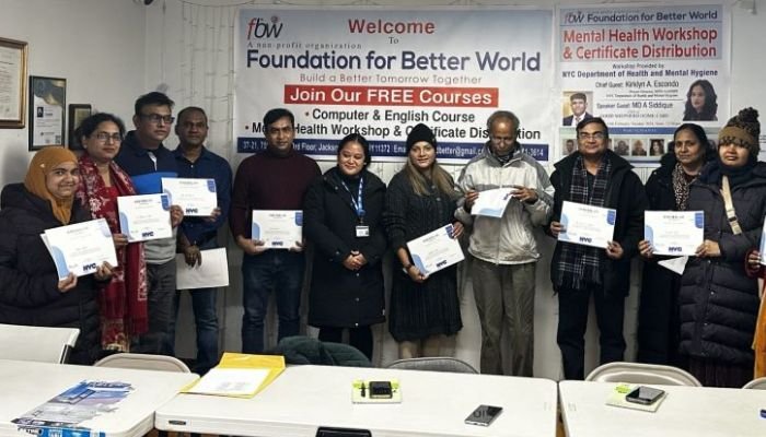 নিউইয়র্ক সিটি, যুক্তরাষ্ট্র: যুক্তরাষ্ট্রের নিউইয়র্কে ফাউন্ডেশন ফর বেটার ওয়ার্ল্ডের মানসিক স্বাস্থ নিয়ে চতুর্থ কর্মশালা গেল ১৩ ফেব্রুয়ারি অনুষ্ঠিত হয়েছে। নিউইয়র্ক হেলথ ডিপার্টমেন্টের কমিউনিটি ট্রেনিং স্পেশালিস্ট ম্যাথিউ মিত্র সেমিনারে মানসিক স্বাস্থ নিয়ে আলোচনা করেন।