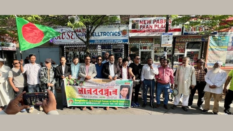 শনিবার (৩ মে) জ্যাকসন হাইটসের ডাইভার্সিটি প্লাজায় সমাবেশের আয়োজন করে বিএনপির সহযোগী সংগঠন ‘জাতীয়তাবাদী ফোরাম’ যুক্তরাষ্ট্র শাখা। এতে সভাপতিত্ব করেন রাফেল তালুকদার, পরিচালনা করেন সরোয়ার খান বাবু।