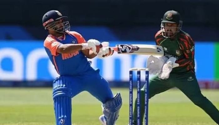 যুক্তরাষ্ট্রের নিউ ইয়র্কে টস জিতে প্রথমে ব্যাট করতে নেমে দ্বিতীয় ওভারে ওপেনার সঞ্জু স্যামসনকে হারায় ভারত। এক রান করে বাংলাদেশের পেসার শরিফুল ইসলামের শিকার হন স্যামসন। দ্বিতীয় উইকেটে অধিনায়ক রোহিত শর্মা ও পান্থ ৪৮ রান যোগ করেন। দুইটি চার ও একটি ছক্কায় ১৯ বলে ২৩ রান করা রোহিতকে শিকার করেন স্পিনার মাহমুদুল্লাহ রিয়াদ। দলীয় ৫৯ রানে রোহিত ফেরার পর বাংলাদেশের বোলারদের উপর চড়াও হন পান্থ ও সূর্যকুমার যাদব। চারটি করে চার-ছক্কায় ৩২ বলে ৫৩ রান করে আহত অবসর নেন পান্থ। চারটি চারে ১৮ বলে ৩১ রান করেন সূর্য। শিবম দুবে ১৪ রানে থামলে, ভারতকে বড় সংগ্রহ এনে দেন হার্ডিক পান্ডিয়া। ছয় নম্বরে নেমে দুইটি চার ও চারটি ছক্কায় ২৩ বলে অপরাজিত ৪০ রান করেন পান্ডিয়া। শেষ পর্যন্ত ২০ ওভারে পাঁচ উইকেটে ১৮২ রান করে ভারত।