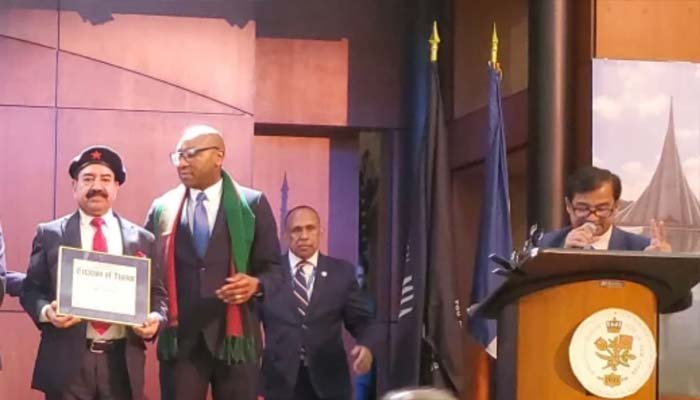 কুইন্স, নিউইয়র্ক, যুক্তরাষ্ট্র: প্রথম বারের মত বাংলাদেশের স্বাধীনতা দিবস উদযাপন করেছে নিউইয়র্কের কুইন্স বরো প্রশাসন। বরোর প্রেসিডেন্ট ডোনোভান রিচার্ডস্ জুনিয়র কুইন্স তথা নিউইয়র্ক সিটিতে বাংলাদেশিদের বহুমুখি অবদানের প্রতি সম্মান জানাতেই এ উদ্যোগ নেন। এরই অংশ হিসেবে তিনি নিউইয়র্কে হোম কেয়ার সেবার পথিকৃৎ, মূলধারার রাজনীতিক, মুক্তিযুদ্ধের মাউন্টেন ব্যাটালিয়ন কমাণ্ডার আবু জাফর মাহমুদকে বিশেষ সম্মানায় ভূষিত করেন।
