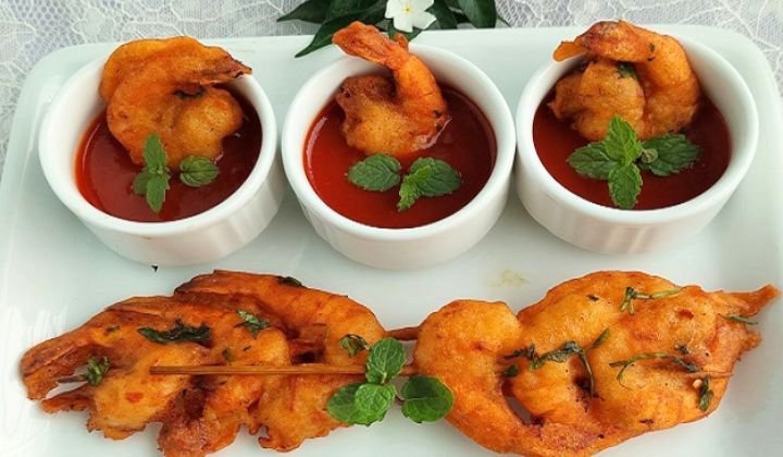 গ্লাসের সাইজ ও বেটারের পরিমাণ দেখে বুঝে নিতে হবে। যাতে শাসলিক কাঠিতে গেঁথে নেওয়া চিংড়ি গ্লাসের বেটারের ডুবিয়ে ওঠানো যায়।