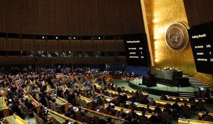 রেজুলেশনটির ভোটাভুটির পক্ষে ভোট দেয় ১৪১ দেশ, বিপক্ষে ভোট দেয় ৭টি দেশ আর ভোটদানে বিরত থাকে ৩২টি দেশ।