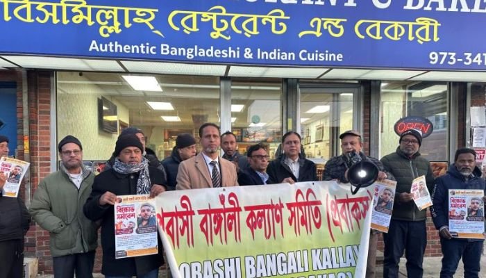 নিউ জার্সি, যুক্তরাষ্ট্র: ঢাকায় হযরত শাহজালাল আন্তর্জাতিক বিমানবন্দরে নরওয়ে প্রবাসী সামাদ উদ্দিনকে নির্যাতনের প্রতিবাদে যুক্তরাষ্ট্রের নিউজার্সী রাজ্যে বিক্ষোভ সমাবেশ অনুষ্ঠিত হয়েছে। রোববার (২৬ জানুয়ারি) প্রবাসী বাঙ্গালী কল্যাণ সমিতি (প্রবাকস) এ সমাবেশে করে।