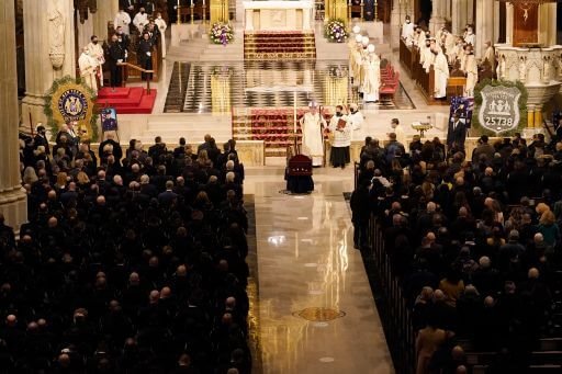 নিউইয়র্কের শীর্ষ কর্মকর্তারা অন্ত্যেষ্টিক্রিয়ার জন্য গির্জার ভিতরে রিভেরার পরিবারের সাথে যোগদানের সাথে সাথে হাজার হাজার পুলিশ ‘বিগ অ্যাপলতে অবস্থান নেন।