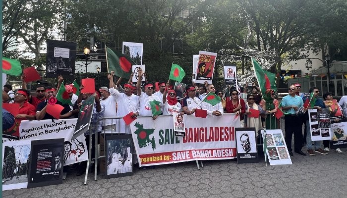 এর আগে একই দাবীতে নিউইয়র্ক সিটির ম্যাহাটানের ঐতিহাসিক টাইম স্কায়ার, বাংলাদেশ কনস্যুলেটের সামনে এবং জাতিসংঘের সামনেও হয়েছে বিক্ষোভ-প্রতিবাদ।