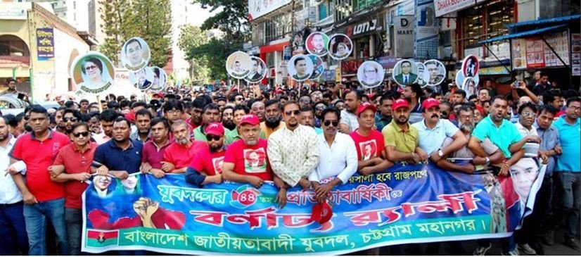 চট্টগ্রাম মহানগর যুবদলের সভাপতি মোশাররফ হোসেন দিপ্তীর সভাপতিত্বে ও সাধারণ সম্পাদক মুহাম্মদ শাহেদের পরিচালনায় অনুষ্ঠিত যুব সমাবেশের পর নানা রঙের বেলুন উড়িয়ে ও শান্তির প্রতীক পায়রা আকাশে উড়িয়ে বর্ণাঢ্য র্যালী উদ্বোধন করেন নগর বিএনপি নেতারা। মহানগর যুবদলের প্রতিষ্ঠা বার্ষিকীল র্যালীটি নগরীর বিভিন্ন সড়ক প্রদক্ষিণ করে জিয়াউর রহমানের স্মৃতিবিজড়িত বিপ্লব উদ্যানে ফুলেল শ্রদ্ধা অর্পণ করেন নগর বিএনপি ও নগর যুবদল নেতারা।