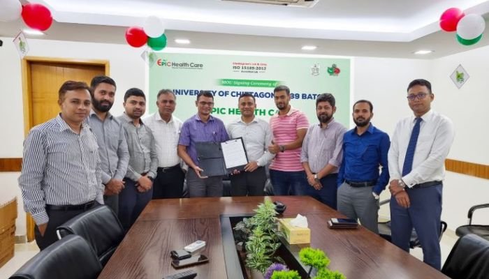 চট্টগ্রাম: আইএসও: ১৫১৮৯ এক্রিডিটেশন প্রাপ্ত ল্যাব এপিক হেলথ কেয়ারের সাথে স্বাস্থ্য সেবা সংক্রান্ত কর্পোরেট চুক্তি সই করেছে চট্টগ্রাম বিশ্ববিদ্যালয়ের ৩৯তম ব্যাচ।