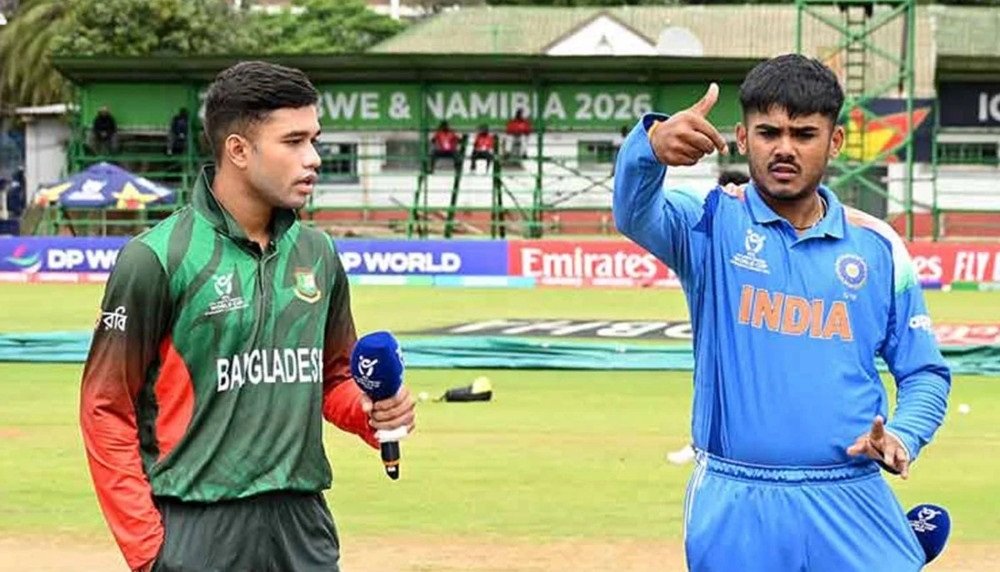 মুস্তাফিজুর রহমানকে আসন্ন আইপিএল থেকে বাদ দেওয়ার সিদ্ধান্তের পর ভারত ও বাংলাদেশের রাজনৈতিক ও ক্রিকেটীয় সম্পর্কে যে টানাপড়েন তৈরি হয়েছে, তার প্রভাব এবার দেখা গেল মাঠের ২২ গজেও। সেই উত্তাপের মাঝেই শনিবার বুলাওয়েতে মুখোমুখি হয়েছে ভারত ও বাংলাদেশের অনূর্ধ্ব-১৯ দল। কিন্তু ম্যাচ শুরুর আগেই সৌজন্যবোধের অভাব নিয়ে তৈরি হয়েছে বিতর্ক।