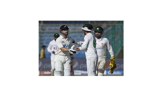 করাচি, পাকিস্তান: পাকিস্তান-নিউজিল্যান্ডের মধ্যকার দুই ম্যাচ সিরিজের প্রথম টেস্ট ড্র হয়েছে। পাকিস্তানের করাচিতে প্রথম ইনিংসে ১৭৪ রানে পিছিয়ে থেকে দ্বিতীয় ইনিংসে চতুর্থ দিন শেষে দুই উইকেটে ৭৭ রান করেছিল পাকিস্তান। ইমাম উল হক ৪৫ ও নোমান আলি চার রানে অপরাজিত ছিলেন। শুক্রবার (৩০ ডিসেম্বর) পঞ্চম ও শেষ দিনের তৃতীয় ওভারে নোমানকে বিদায় করেন নিউজিল্যান্ডের স্পিনার মাইকেল ব্রেসওয়েল। চার রান করেন নোমান।