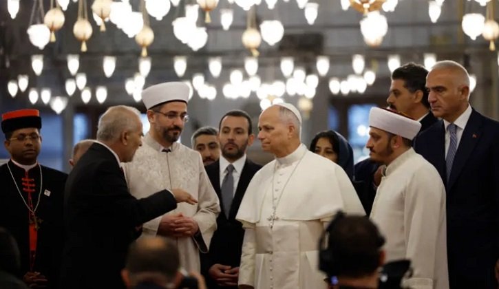 পোপ নির্বাচিত হয়ে প্রথমবারের মতো তুরস্ক সফরে গিয়ে ইস্তাম্বুলের ঐতিহাসিক নীল মসজিদ (ব্লু মস্ক) পরিদর্শন করেছেন পোপ লিও চতুর্দশ। স্থানীয় মুসলিম নেতাদের সঙ্গে গতকাল শনিবার তিনি মসজিদে প্রবেশ করেন।