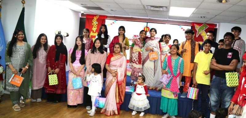 নিউইয়র্ক: যুক্তরাষ্ট্রের নিউইয়র্কস্থ জাতিসংঘে বাংলাদেশ স্থায়ী মিশনে বাংলা নববর্ষ ১৪৩২ উৎসবমুখর ও আনন্দঘন পরিবেশে উদযাপন করা হয়েছে। গত বুধবার (২৩ এপ্রিল) বাঙালি, চাকমা, মণিপুরী, মারমা, ত্রিপুরা, গারো ও অন্যান্য জাতিগোষ্ঠীর সংস্কৃতি তুলে ধরে মিশনের মিলনায়তনে মনোজ্ঞ সাংস্কৃতিক অনুষ্ঠানের আয়োজন করা হয়।