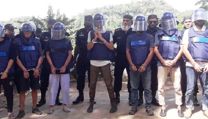 গ্রেফতারকৃতরা হল- সুনামগঞ্জের জগন্নাথপুর থানার মৃত সৈয়দ আবুল কালামের ছেলে সৈয়দ মারুফ আহমদ ওরফে মানিক (৩১), পিরোজপুর জেলা স্বরুপকাঠি থানার মো. শাহ আলমের ছেলে ইমরান হোসাইন ওরয়ে সাওন (৩১), ঝিনাইদহ জেলার শৈলকুপা থানার মৃত গোলাম কিবরিয়ার ছেলে কাওসার ওরফে শিমির (৪৬), সিলেটের বিয়ানিবাজার উপজেলার ফজলুল হকের ছেলে জাহাঙ্গীর আহম্মেদ ওরফে জনু (২৭), বরিশাল জেলার মুলাদি থানার নয়ন মৃধার ছেলে মো. ইব্রাহিম আলী (১৯), সিলেট জেলার গোলাপগঞ্জ থানার আতিকুল আলমের ছেলে আবু বক্কর সিদ্দিক বাপ্পি (২৩), সুনামগঞ্জ জেলার চাতক থানার আব্দুস সালামের ছেলে রুফু মিয়া (২৬), বান্দরবান জেলার রোয়াংছড়ি উপজেলার লাল মুন সয় বমের ছেলে জৌথান স্যাং বম (১৯), একই উপজেলার জিক বিল বমের ছেলে মাল সম বল (২০) ও স্টিফেন বম (২১)।