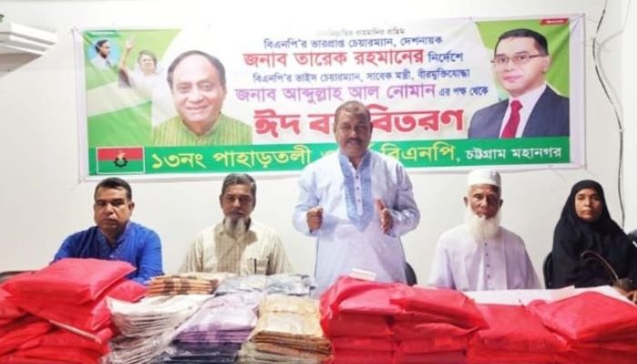 চট্টগ্রাম: বিএনপির ভাইস চেয়ারম্যান সাবেক মন্ত্রী বীর মুক্তিযোদ্ধা আবদুল্লাহ আল নোমানের পক্ষ থেকে ১৩ নম্বর পাহাড়তলী ওয়ার্ডের বিএনপির উদ্যোগে ফ্যাসিস্ট সরকারের জেল, জুলুম ও নির্যাতনের শিকার নেতাকর্মীদের মাঝে ঈদ বস্ত্র বিতরণ করা হয়েছে। মঙ্গলবার (৯ এপ্রিল) সন্ধ্যায় সিটির খুলশীতে এসব ঈদ বস্ত্র বিতরণ করা হয়।