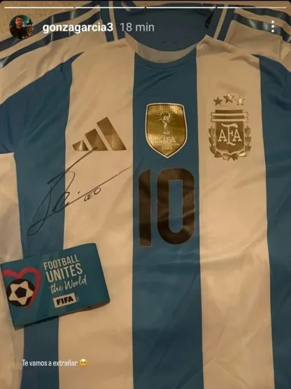 পরে গার্সিয়া আরেকটি ছবি শেয়ার করেন, যেখানে দেখা যায় মেসি তাকে একটি সই করা আর্জেন্টিনা জার্সি দিয়েছেন। সঙ্গে ছিল অধিনায়কের আর্মব্যান্ডও। ছবির সঙ্গে লিখেছেন, ‘আমরা তোমাকে মিস করব।’