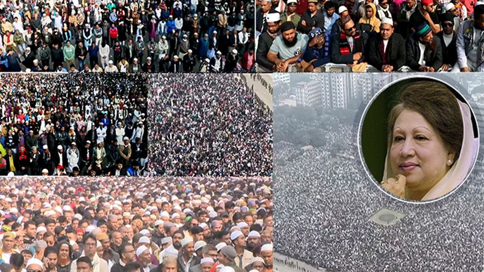 বিএনপি চেয়ারপার্সন ও সাবেক প্রধানমন্ত্রী বেগম খালেদা জিয়ার জানাজা অনুষ্ঠিত হয়েছে। শুধু বাংলাদেশ নয়, মুসলিম বিশ্বের স্মরণকালের বৃহৎ এই জানাজায় অংশ নেয় লাখ লাখ মানুষ। বুধবার বিকাল ৩টা ৩ মিনিটে জাতীয় সংসদ ভবনের দক্ষিণ প্লাজায় এ জানাজা অনুষ্ঠিত হয়।
