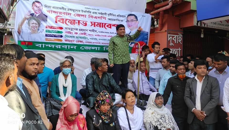 বুধবার (২ মার্চ) বিকালে নিত্য প্রয়োজনীয় পণ্যের দাম বৃদ্ধি ও সর্বগ্রাসী দুর্নীতির প্রতিবাদে বান্দরবান জেলা বিএনপির উদ্যোগে বান্দরবান বাজারে আয়োজিত বিক্ষোভ সমাবেশে তিনি এসব কথা বলেন।