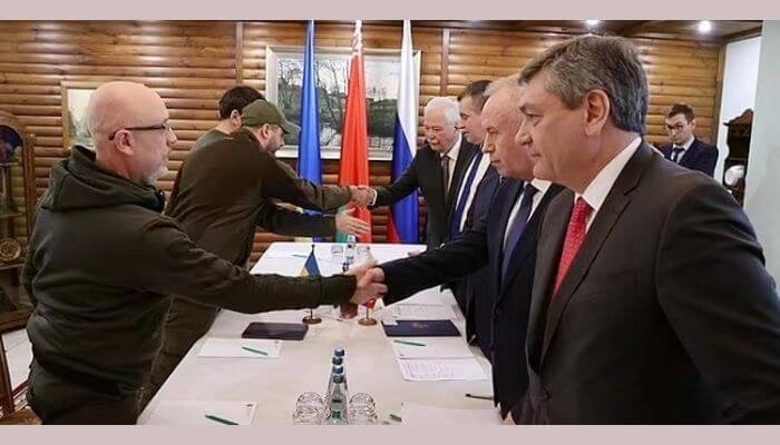 গত ২৪ ফেব্রুয়ারি দুই দেশের মধ্যে শুরু হওয়া যুদ্ধে হয়েছে ব্যাপক প্রাণহানি। অনেকে ভয়ে ছেড়ে গেছে বাড়িঘর। এমন পরিস্থিতিতে বেলারুশের গোমেল অঞ্চলে ইউক্রেন ও রাশিয়ার মধ্যে প্রথম বৈঠক অনুষ্ঠিত হয়। সেখানে দুই দেশের প্রতিনিধি দলের সঙ্গে উপস্থিত ছিলেন বেলারুশের পররাষ্ট্রমন্ত্রী ভ্লাদিমির মাকেই। তবে দেশ দুটির মধ্যে প্রথম বৈঠকটি হয় ইউক্রেন-বেলারুশ সীমান্তে। সেসময় কোনো ধরনের চুক্তি ছাড়াই ওই বৈঠক শেষ হয়।