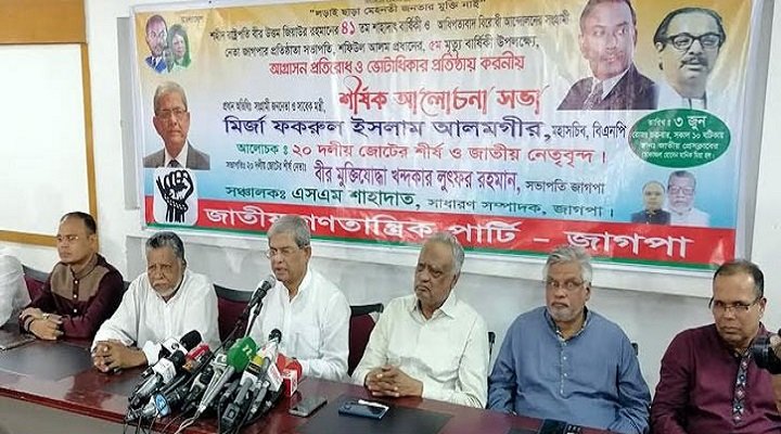 জাগাপার সভাপতি খন্দকার লুতফর রহমানের সভাপতিত্বে ও সাধারণ সম্পাদক এসএম শাহাদাতের সঞ্চালনায় আলোচনা সভায় জাতীয় পার্টি(কাজী জাফর) মোস্তফা জামাল হায়দার, বিএনপির আমান উল্লাহ আমান, খায়রুল কবির খোকন, এনপিপির ফরিদুজ্জামান ফরহাদ, জাতীয় দলের সৈয়দ এহসানুল হুদা, এলডিপির শাহাদাত হোসেন সেলিম, ডিএলের সাইফুদ্দিন আহমেদ মনি প্রমূখ নেতারা বক্তব্য রাখেন।