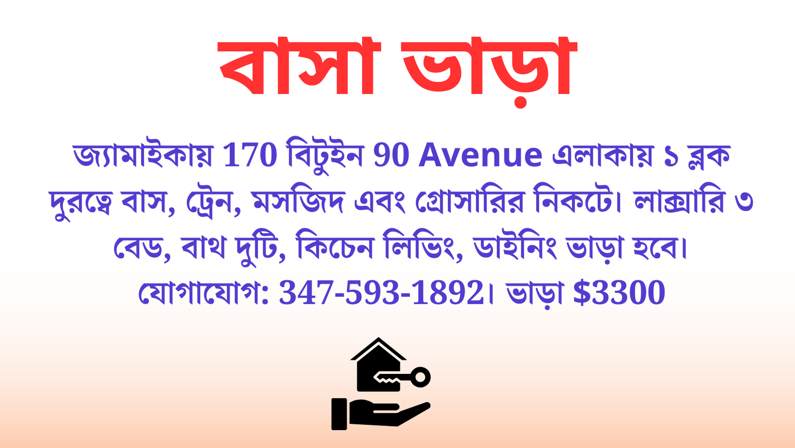 ব্রঙ্কসের ১৫৬৪ হোয়াইট প্লেন রোডে, পার্কচেস্টার মেসির পিছনে রিনোভেটেড ৪ বেডরুম, ১ বাথরুম, ২য় তলা, ৩০০০ ডলার এবং ১ম তলায় ৩ বেডরুম, ১ বাথরুম, ডক্টরস, ট্যাক্স, হোমকেয়ার, ডে কেয়ার ইত্যাদি অফিসের জন্য উপযোগী ৩০০০ ডলারে ভাড়া হবে। হলিসে ২ বেডরুম,...বিস্তারিত দেখুন
