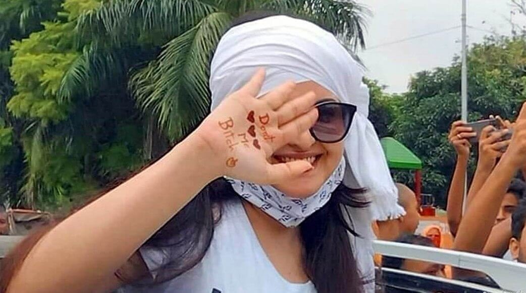 মাদক মামলায় গ্রেপ্তার চিত্রনায়িকা পরী মণি প্রায় এক মাস পর আজ বুধবার সকালে গাজীপুরের কাশিমপুর মহিলা কারাগার থেকে মুক্তি পেয়েছেন। এ সময় তাঁর হাত ছিল মেহেদিতে রাঙানো। ডান হাতে ইংরেজিতে লেখা, ‘ডোন্ট লাভ (লাভ চিহ্ন) মি বিচ’। তবে এই লেখা তিনি কার উদ্দেশে লিখেছেন, সেটা নিশ্চিত হওয়া যায়নি। পরীর এই বার্তা নিয়ে অন্তর্জালে চলছে তুমুল আলোচনা। ছবি : ফোকাস বাংলা