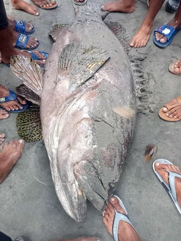 কক্সবাজারের টেকনাফ উপজেলার সেন্ট মার্টিন দ্বীপে বড়শিতে ধরা পড়েছে বিশাল আকৃতির একটি বোল মাছ। আজ বুধবার বিকেলে দ্বীপের উত্তরপাড়া সৈকতে ৭০ কেজির বেশি ওজনের এই মাছটি ধরেন আবদুর রহমান নামের এক মৎস্য শিকারি। পরে মাছটি এক হাজার টাকা কেজি ধরে বিক্রি করা হয়। ছবি : সংগৃহীত